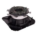 Gomme acoustique incluse. Elle atténue les vibrations et résonnances de moitié par rapport à l’utilisation d’un plot seul.