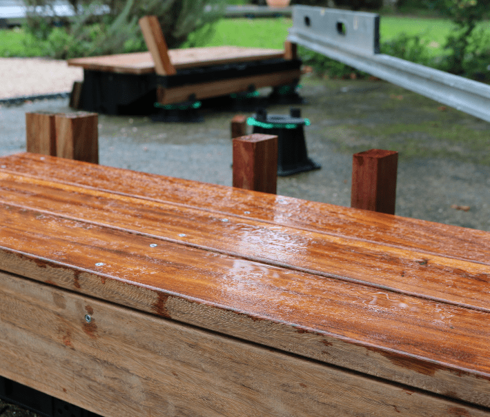 Pour cette réalisation, l’objectif était de réaliser une terrasse surélevée en bois avec l’intégration d’un brasero au milieu pour profiter des belles soirées d’été. Deux marches ont également été implantées sur deux côtés de la terrasse afin d’y accéder facilement.